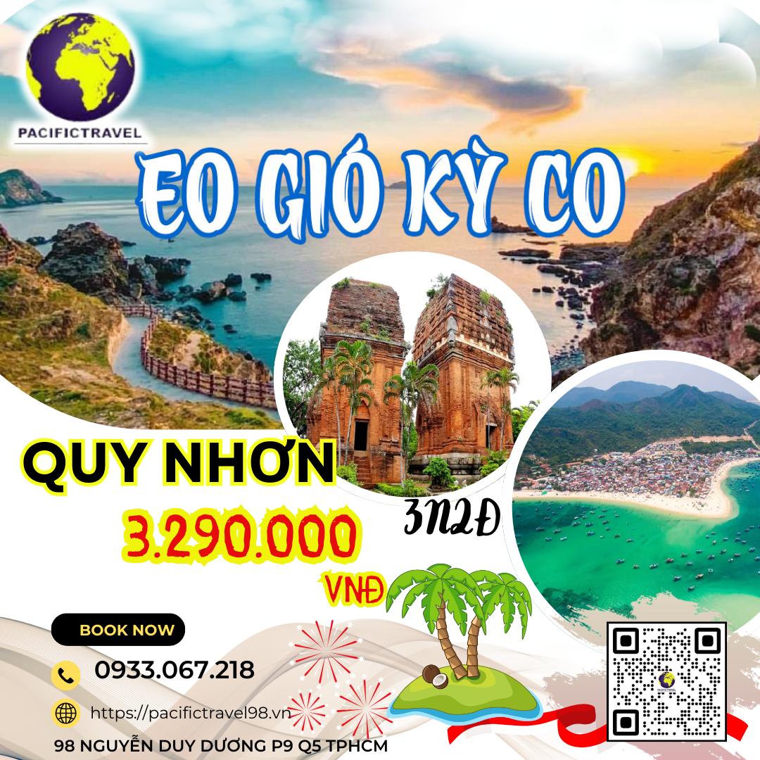 - Đoàn tiếp tục hành trình tham quan “Eo Gió” – Một ghềnh đá quanh năm lộng gió. Đứng trên Eo Gió, phóng tầm mắt ra xa, quý khách chiêm ngưỡng bao quát cả vùng biển bao la rộng lớn, đắm say lòng người. Eo gió – Nơi ngắm Hoàng hôn đẹp nhất Việt Nam.